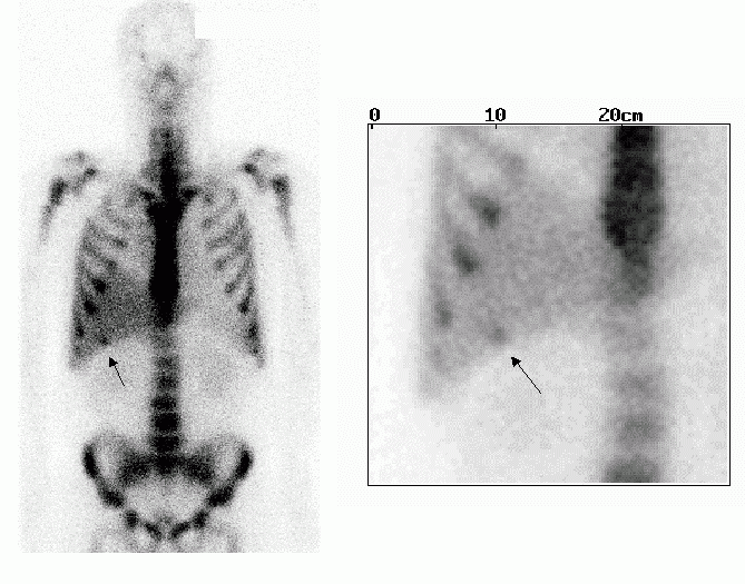 Normális csontvelő-szcintigráfia BW 250/183 antigranulocyta monoklonális ellenanyaggal.