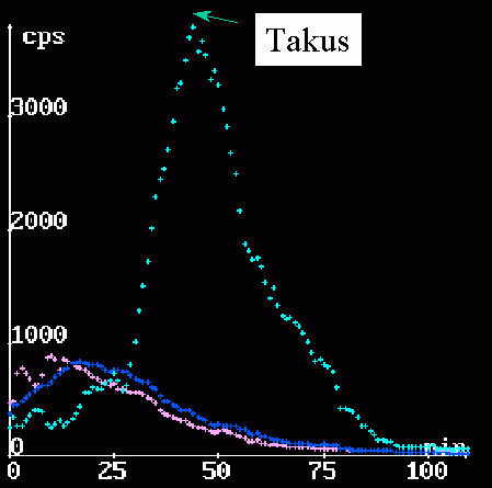 A jelzett régiók idő-aktivitás görbéi normális HIDA transzportra, jól telődő és 45 perces 1 ng/min/kg Takus infúzió hatására jól ürülő epehólyagra utalnak.