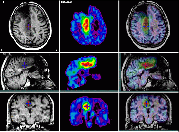 Az előző képeken az FDG-t nem dúsító laesio intenzíven halmozza a metionint, ami alacsony malignitási