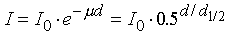 közegekben exponenciálisan csökken a rétegvastagsággal:
